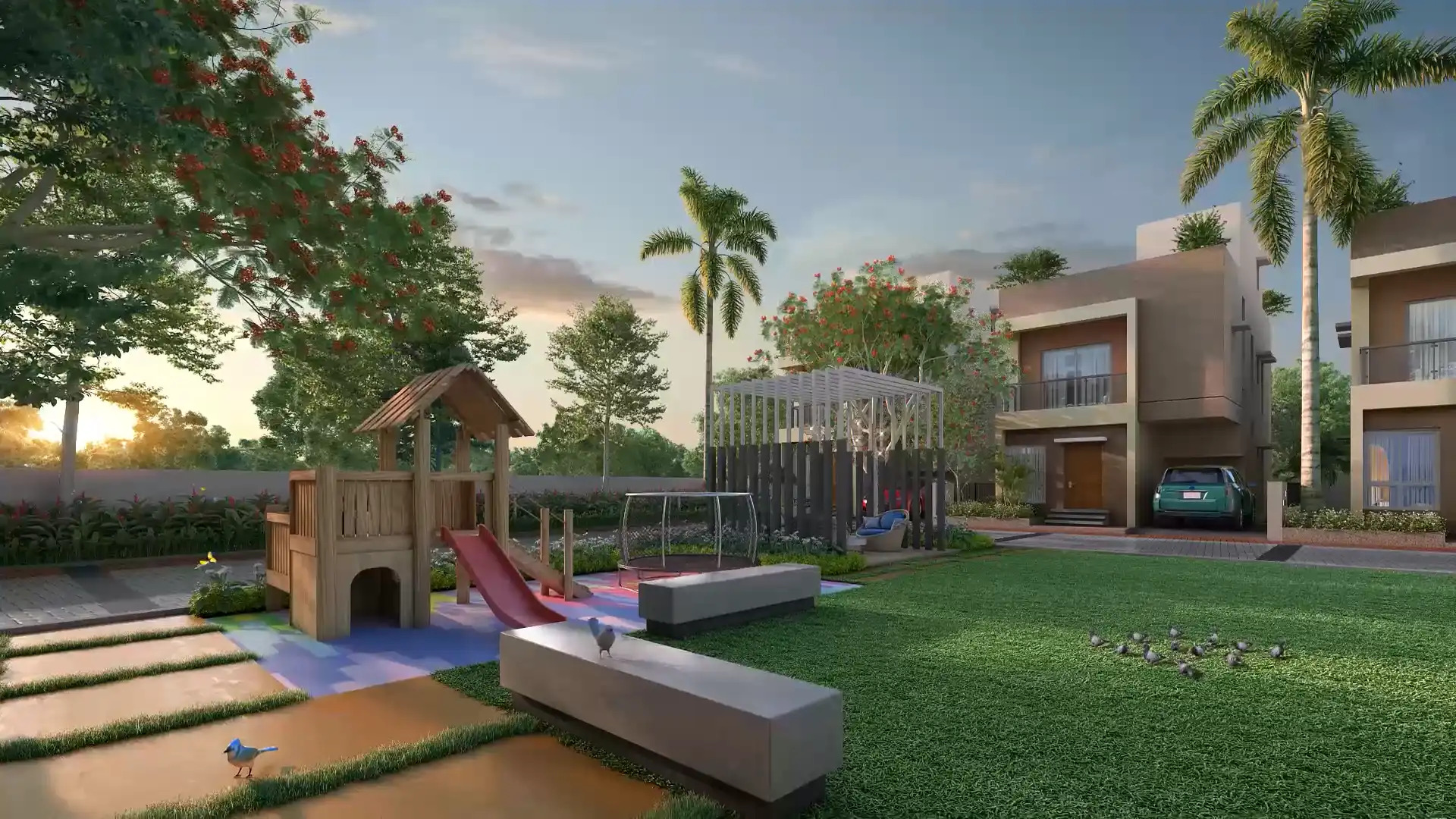 The project offers a Children’s Play Area, Basketball Court, and Car Parking. Bungalow Bari’s balconies are elegantly constructed and generous in size. Here, you may find all of your finest moments of renewal. Improve your home’s space in unexpected locations! Also, you may utilize a variety of creative and clever space-saving techniques at the project to keep your house neat and elegant while also minimizing clutter. Private terraces are included in each residence at Bungalow, and they will quickly become your favorite area! The greatest playground for a kid is their own, large, also open place where they may run around and discover the world.